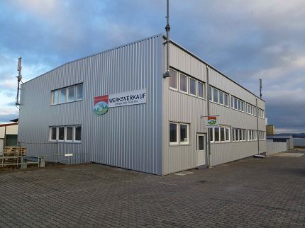 Der Werksverkauf befindet sich im Gebäude rechts vorm Haupttor.